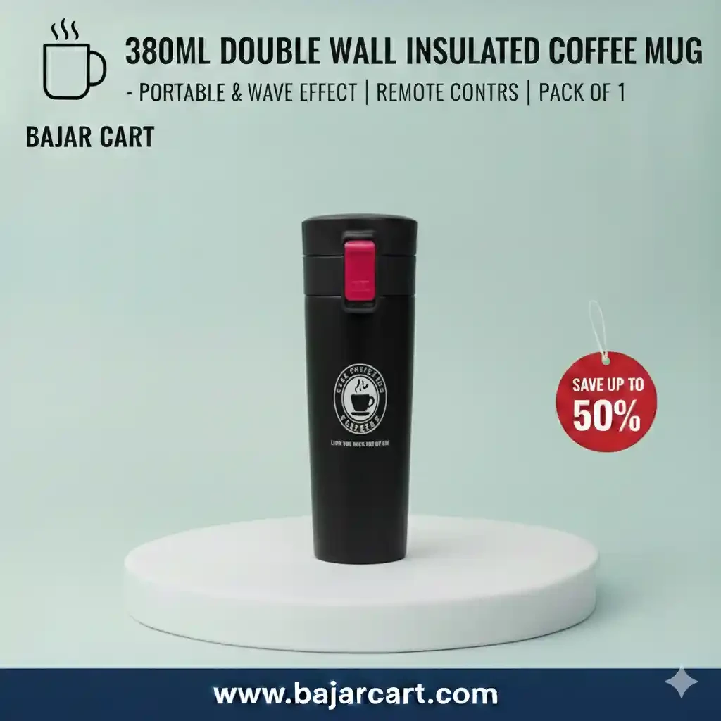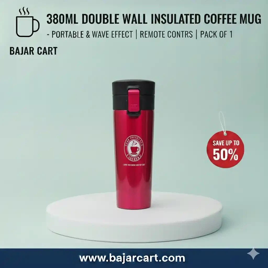 380ml double wall insulated coffee mug that keeps beverages hot or cold for up to 6 hours. Enhances taste retention and ideal for daily use at home or office.