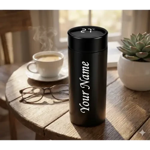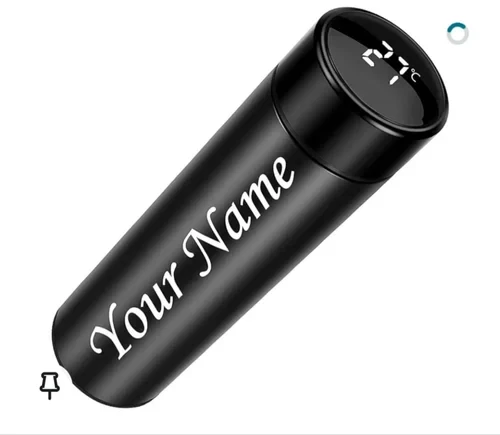 Customised Name Printed Water Bottle आपके नाम या ब्रांड लोगो के साथ उपलब्ध है। यह बोतल पानी या अन्य तरल पदार्थ को सुरक्षित तापमान में रखती है और रोज़ाना उपयोग के लिए उपयुक्त है।