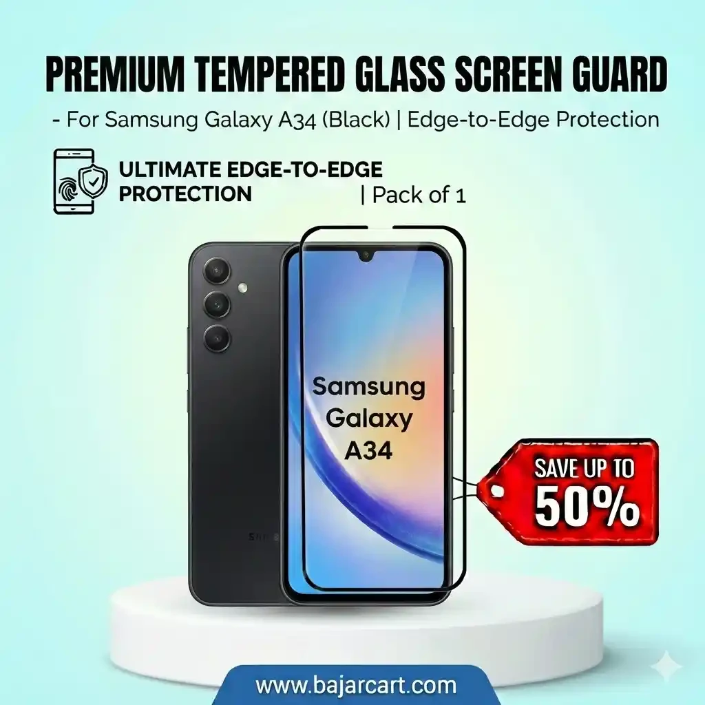 Protect your Samsung Galaxy A34 display with this premium tempered glass screen guard designed for full screen, edge-to-edge coverage. Manufactured using high-hardness tempered glass, it helps safeguard your smartphone from scratches, minor impacts, and everyday wear while preserving original display clarity and smooth touch response.