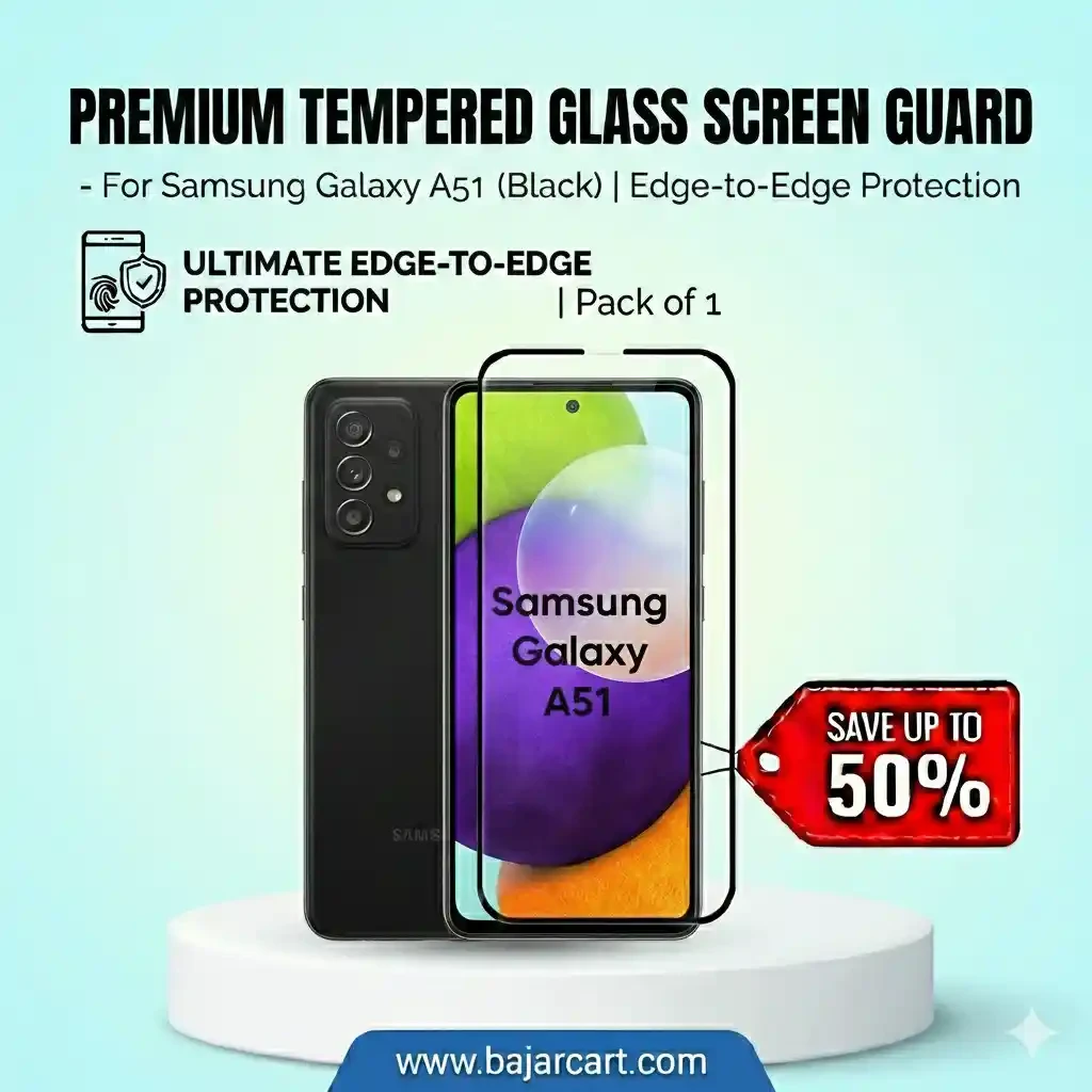 Protect your Samsung Galaxy A51 display with this premium tempered glass screen guard designed for full screen, edge-to-edge coverage. Manufactured using high-hardness tempered glass, it helps safeguard your smartphone from scratches, minor impacts, and everyday wear while preserving original display clarity and smooth touch response.