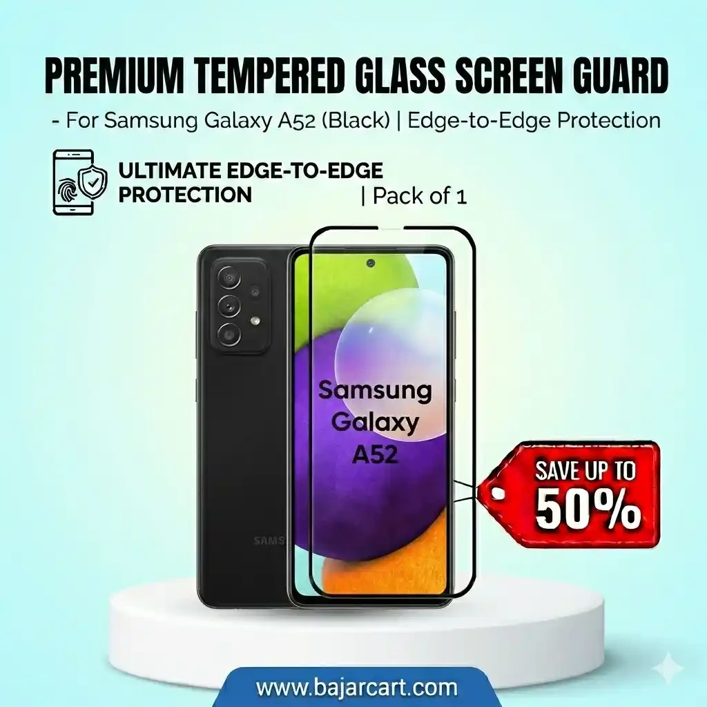 Protect your Samsung Galaxy A52 display with this premium tempered glass screen guard designed for full screen, edge-to-edge coverage. Crafted from high-hardness tempered glass, it helps safeguard your smartphone from scratches, minor impacts, and everyday wear while preserving original display clarity and smooth touch response.