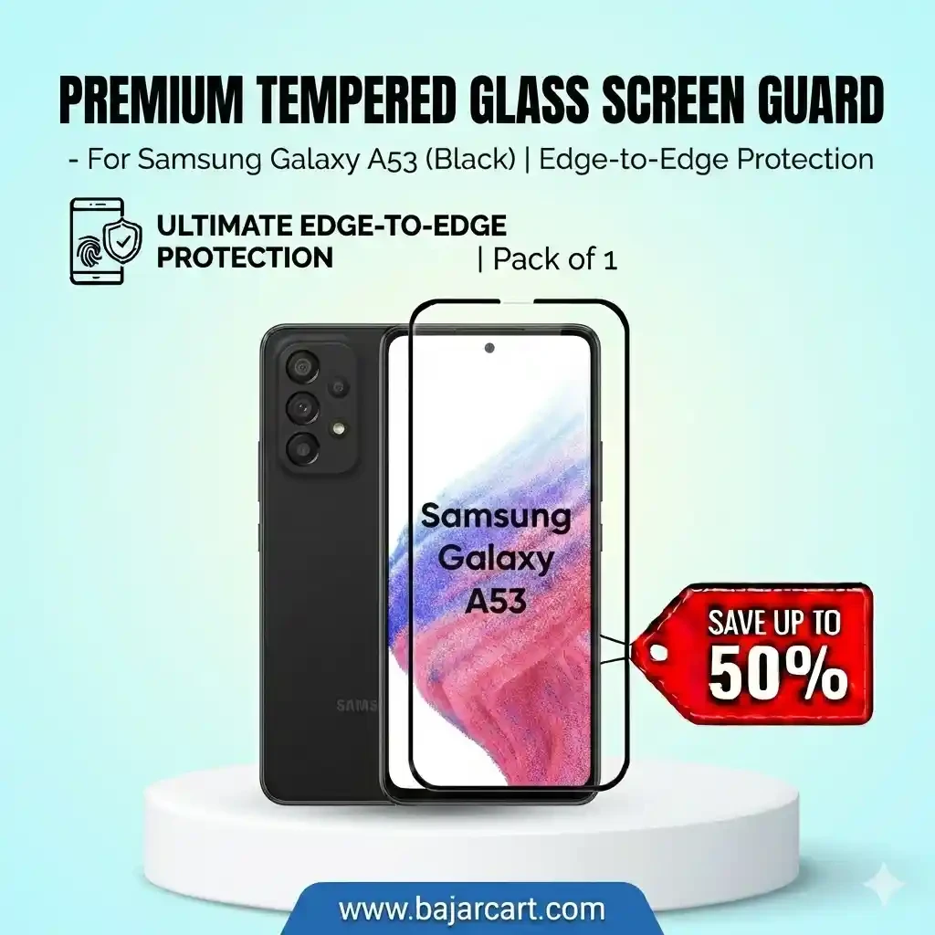 Protect your Samsung Galaxy A53 display with this premium tempered glass screen guard designed for full screen, edge-to-edge coverage. Manufactured using high-hardness tempered glass, it helps safeguard your smartphone from scratches, minor impacts, and everyday wear while preserving original display clarity and smooth touch response.