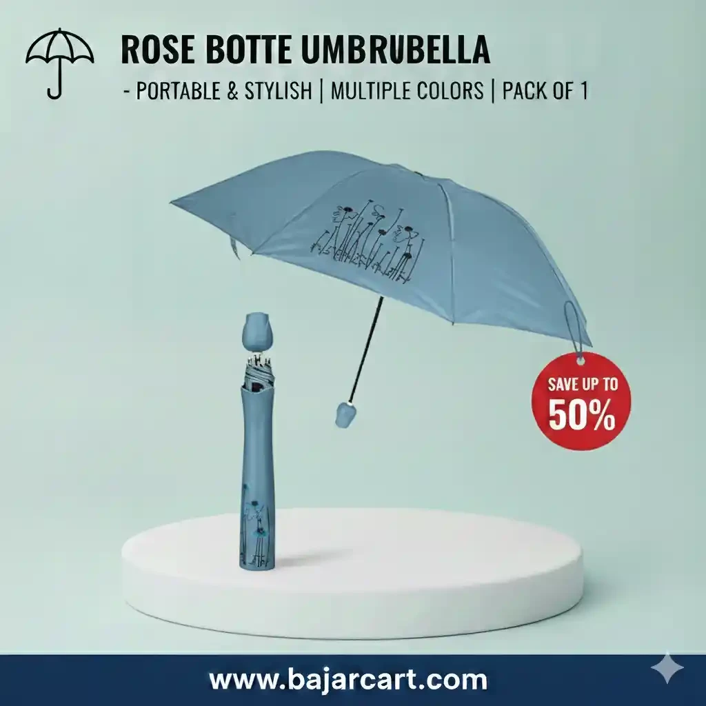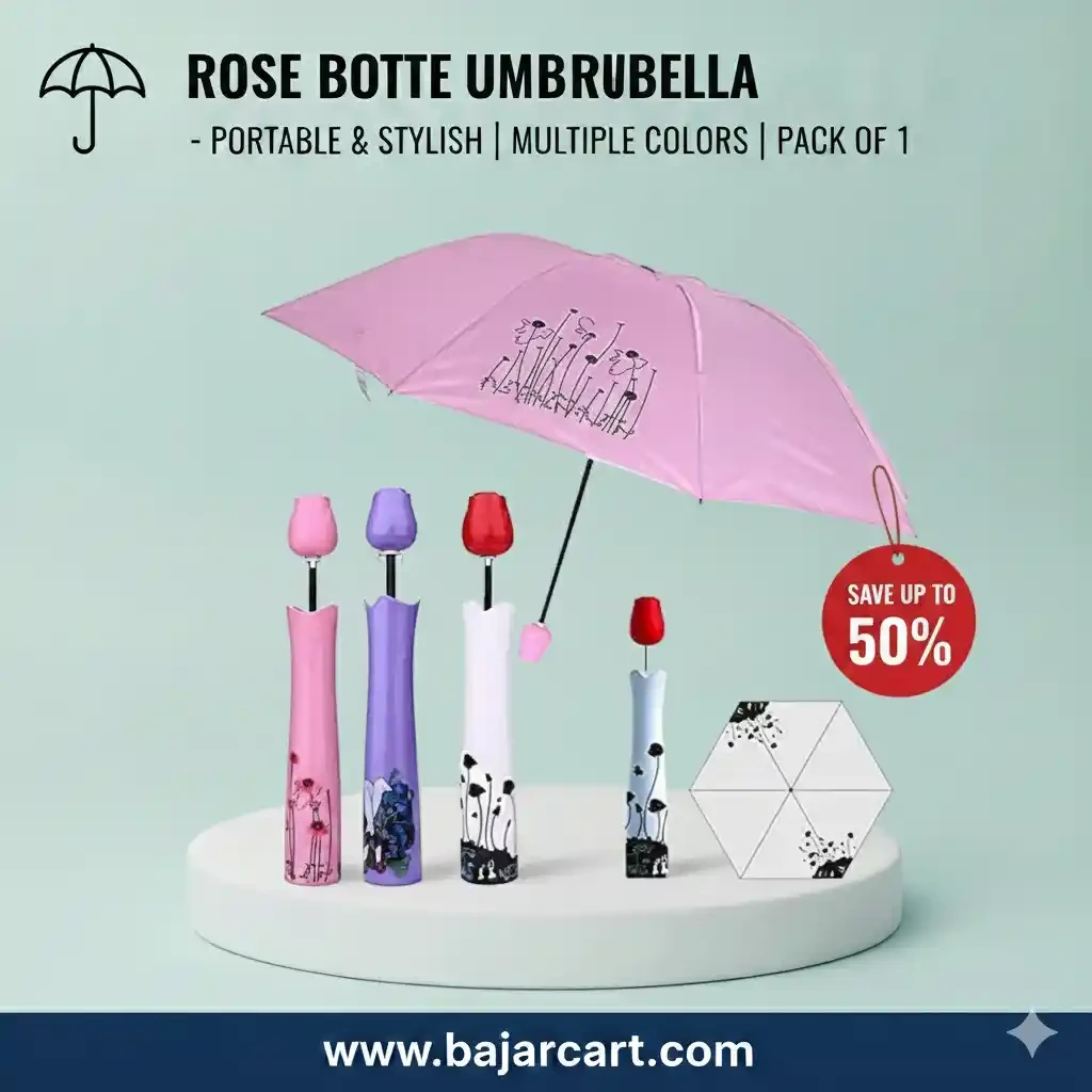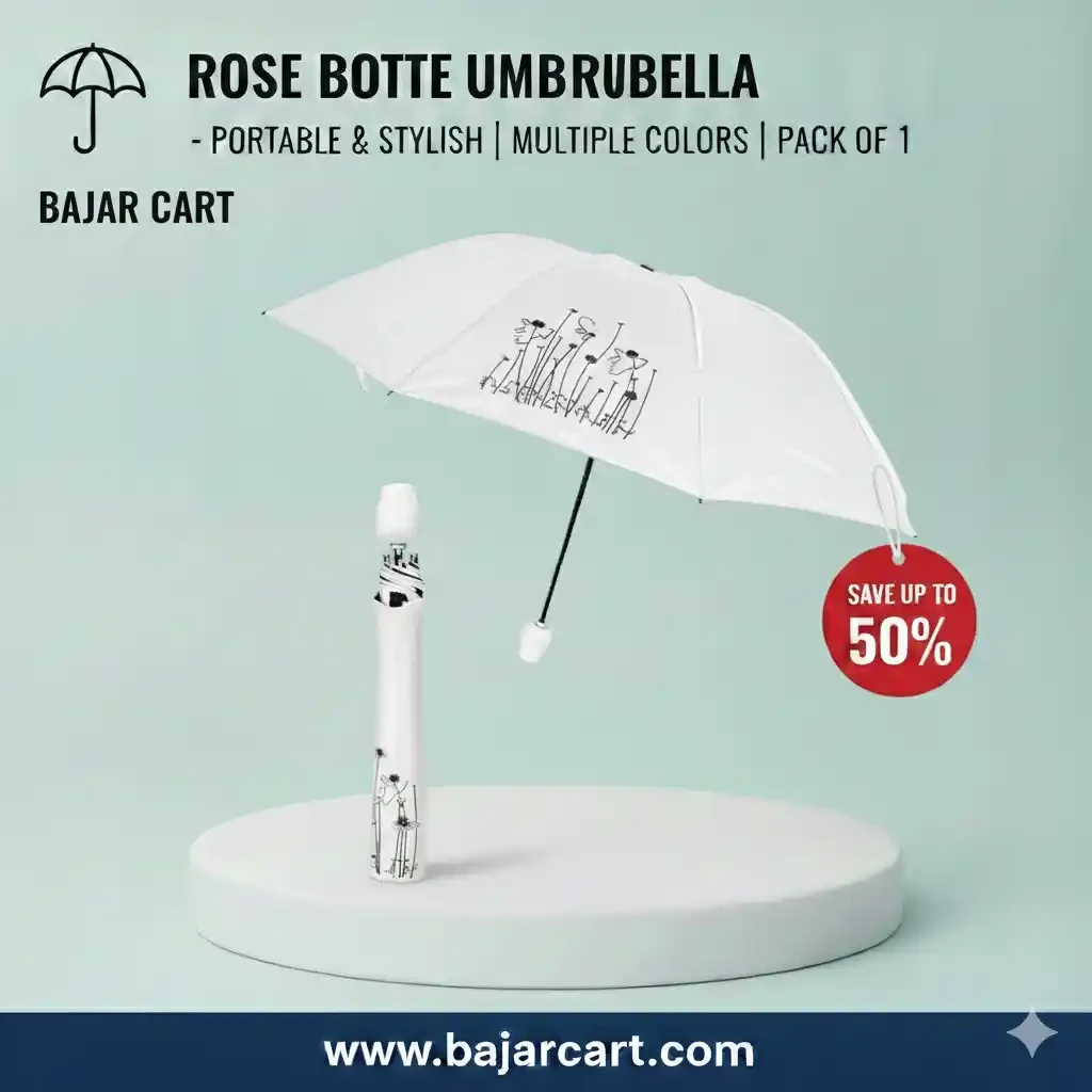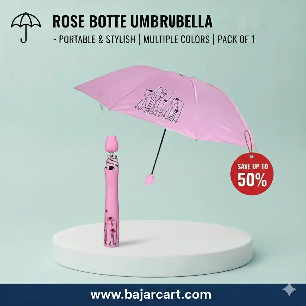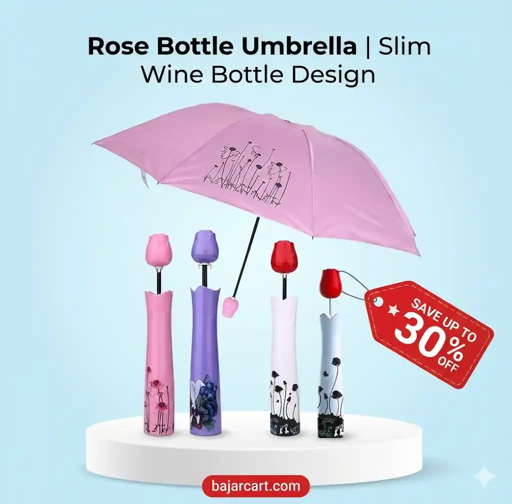 The Rose Bottle Umbrella is a stylish and practical solution for unpredictable weather. Designed in a slim wine bottle shape, this umbrella looks elegant while offering everyday convenience. Made from 100% polyester, it provides reliable protection from rain and is suitable for regular use.