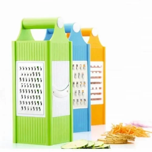 Description (EN)* Make kitchen prep faster, safer, and easier with this versatile 4-in-1 Vegetable Slicer & Grater! Featuring 4 interchangeable sharp stainless steel blades, it lets you slice, grate, shred (julienne), and chop vegetables, fruits, cheese, nuts, ginger, garlic, carrots, potatoes, and more in seconds – no knife needed!